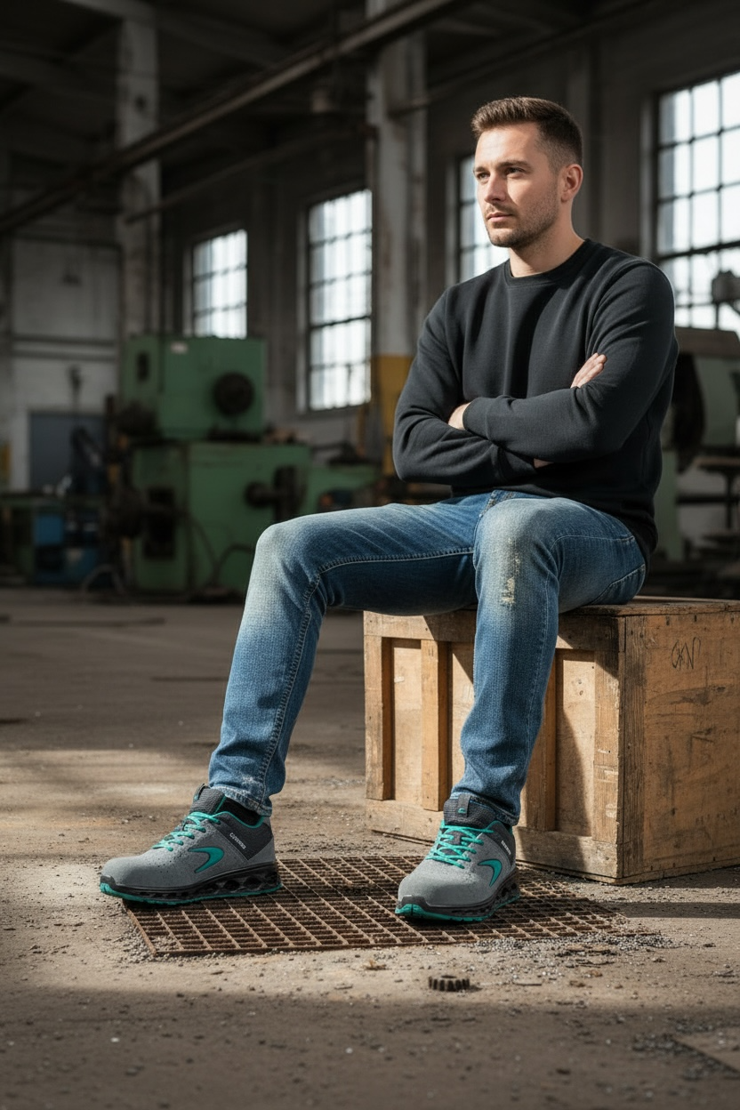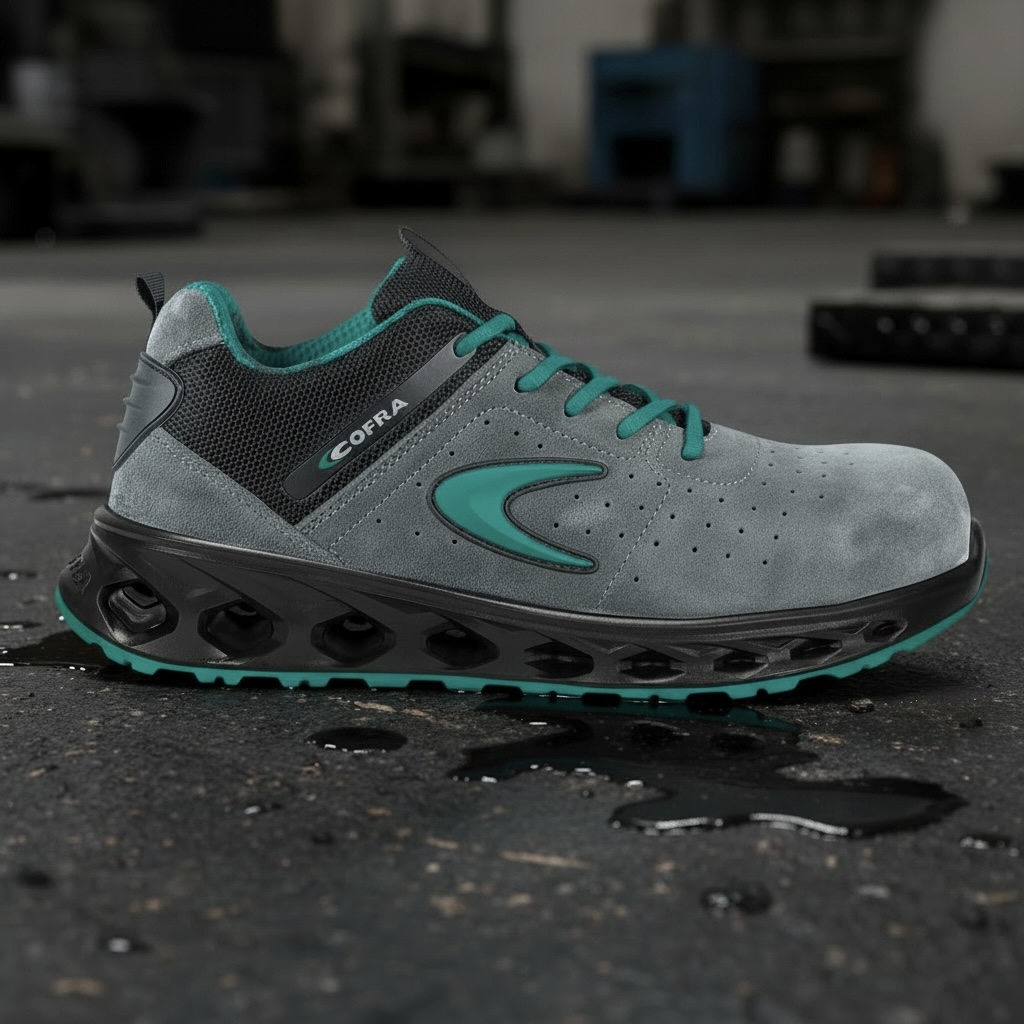 Sole:dual-density polyurethane with low electrical resistance